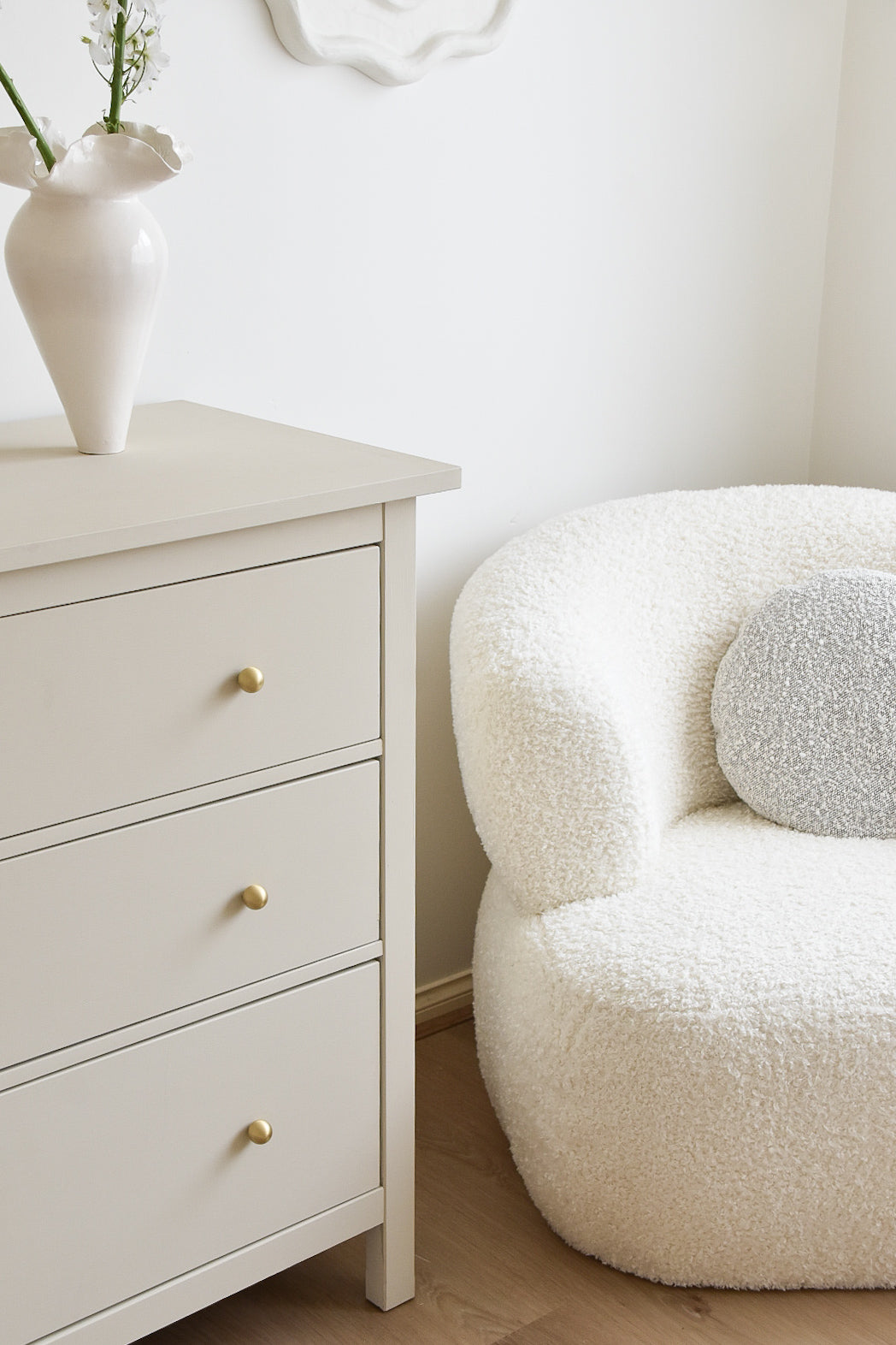 Titus is a solid brass spherical knob maunufactured in satin brass, matte white and matte black.