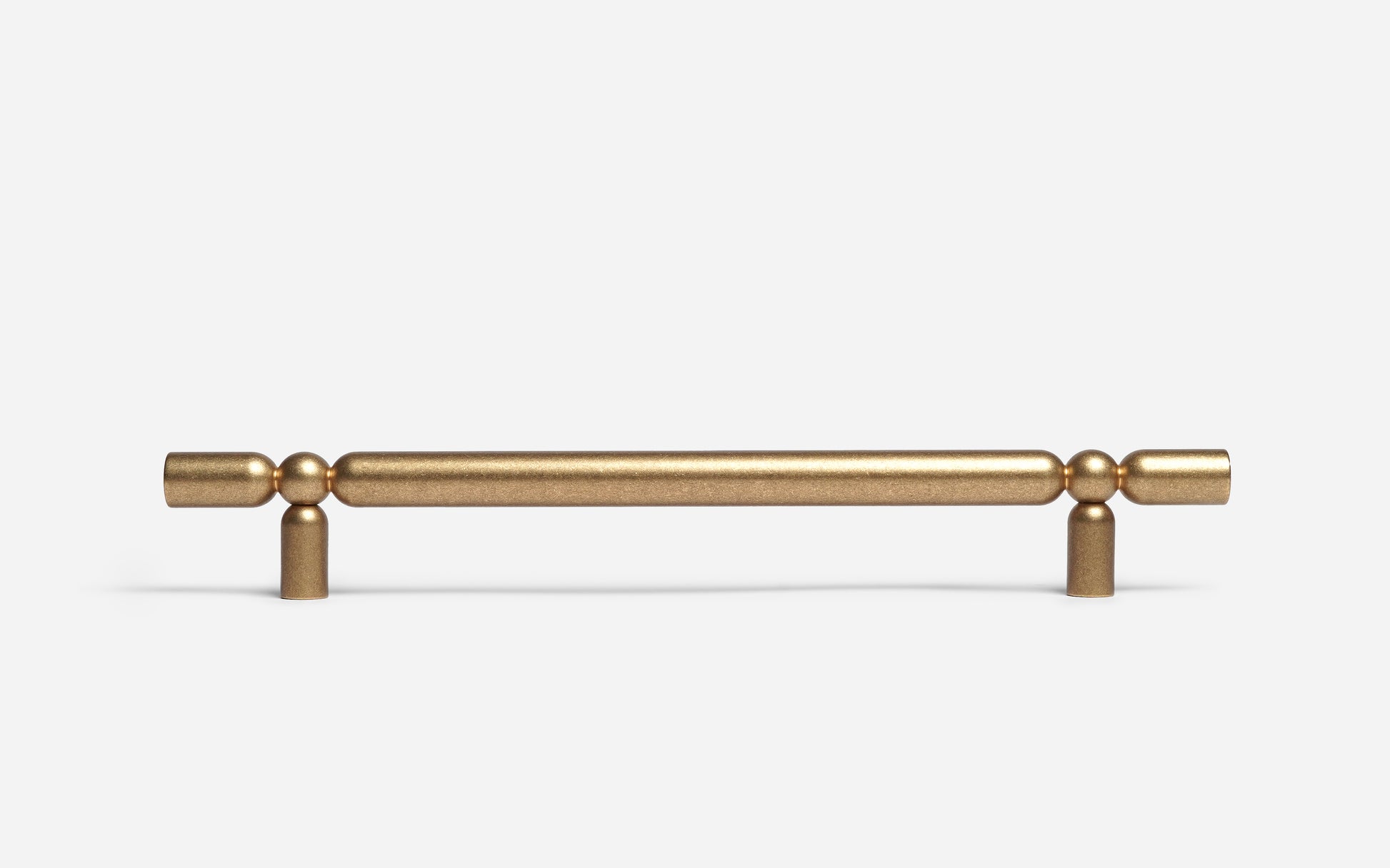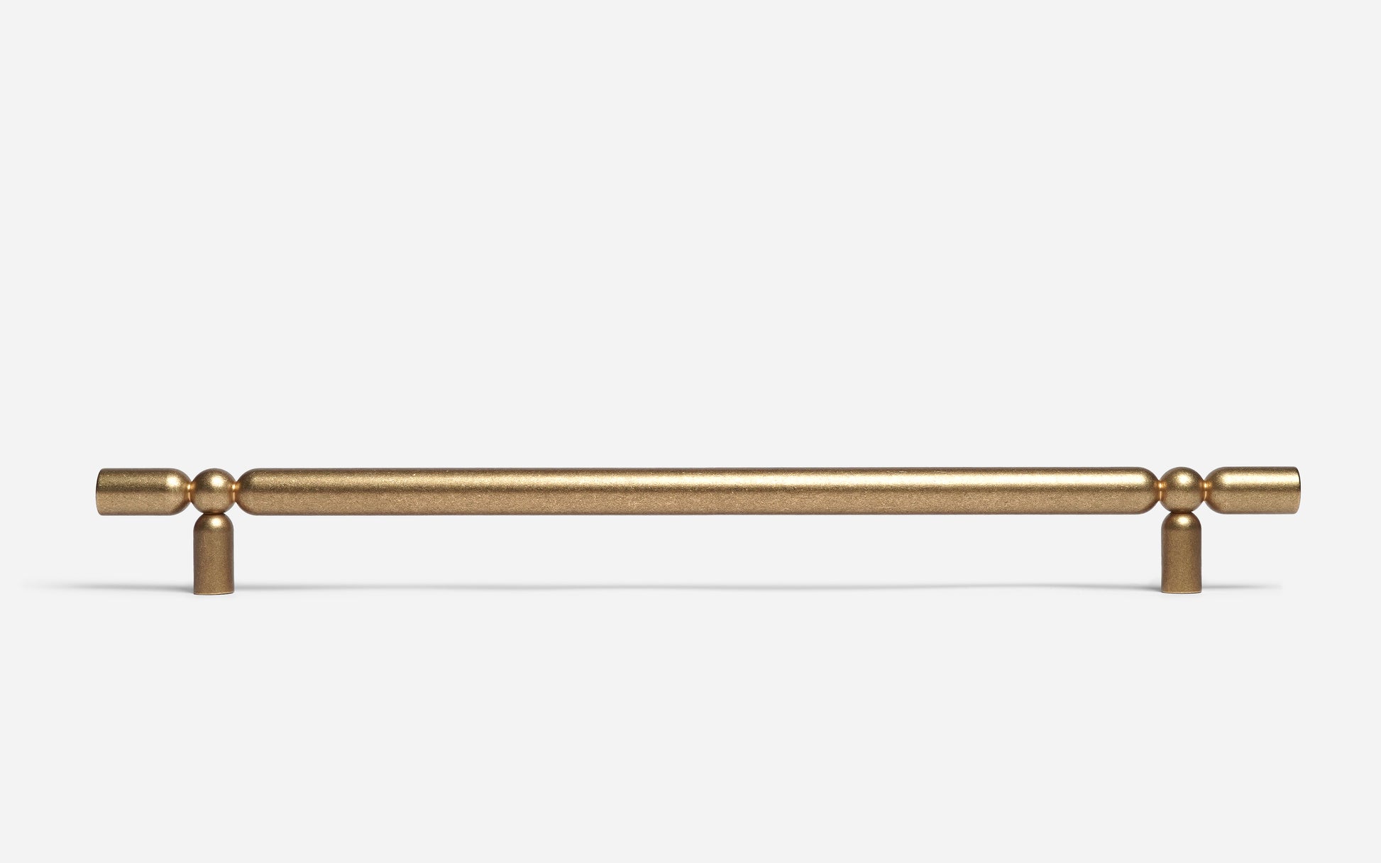 This elongated brass handle plays with balance and proportion, pairing a sleek linear form with softened spherical connections. The dual supports add visual rhythm while enhancing structural presence. The architectural feel of NOX suits both contemporary and classic interiors.